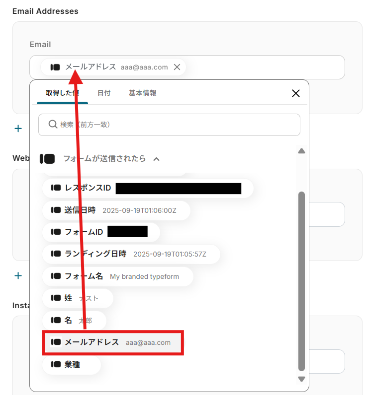 ・Typeformの回答内容を取得する方法は下記をご参照ください。