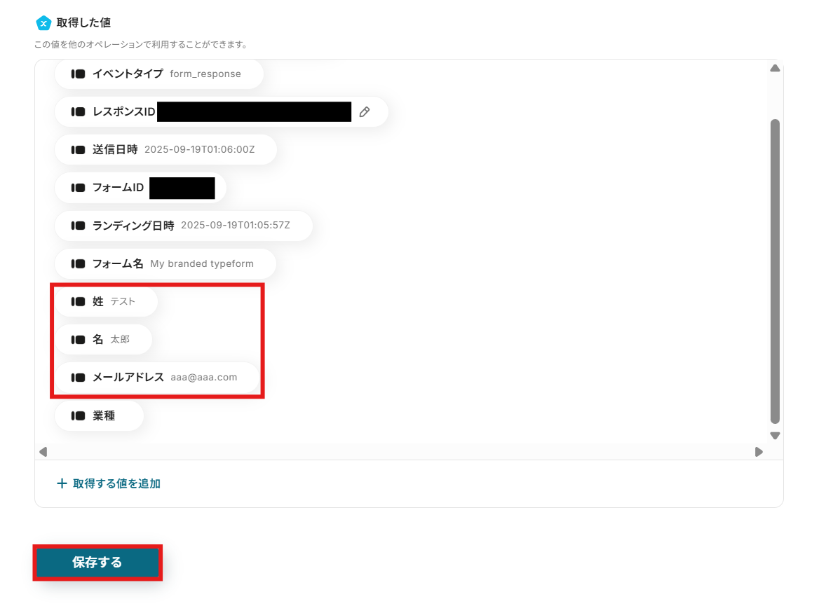必要な情報が(赤枠内)取得できていることを確認したら保存ボタンをクリックしましょう。