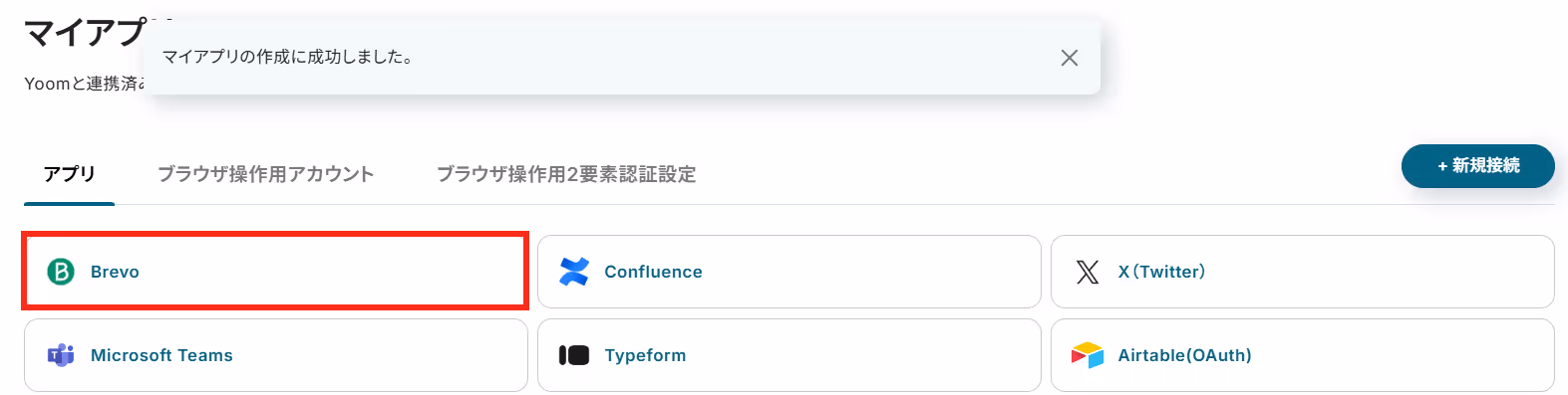 マイアプリにBrevoが追加されたことを確認出来たら、Brevoのマイアプリ登録は完了となります。