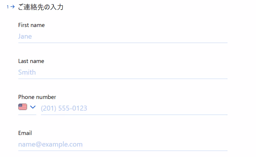 今回は姓、名、アドレス、電話番号の4つを登録したいため、下記の設定を行っていきます。