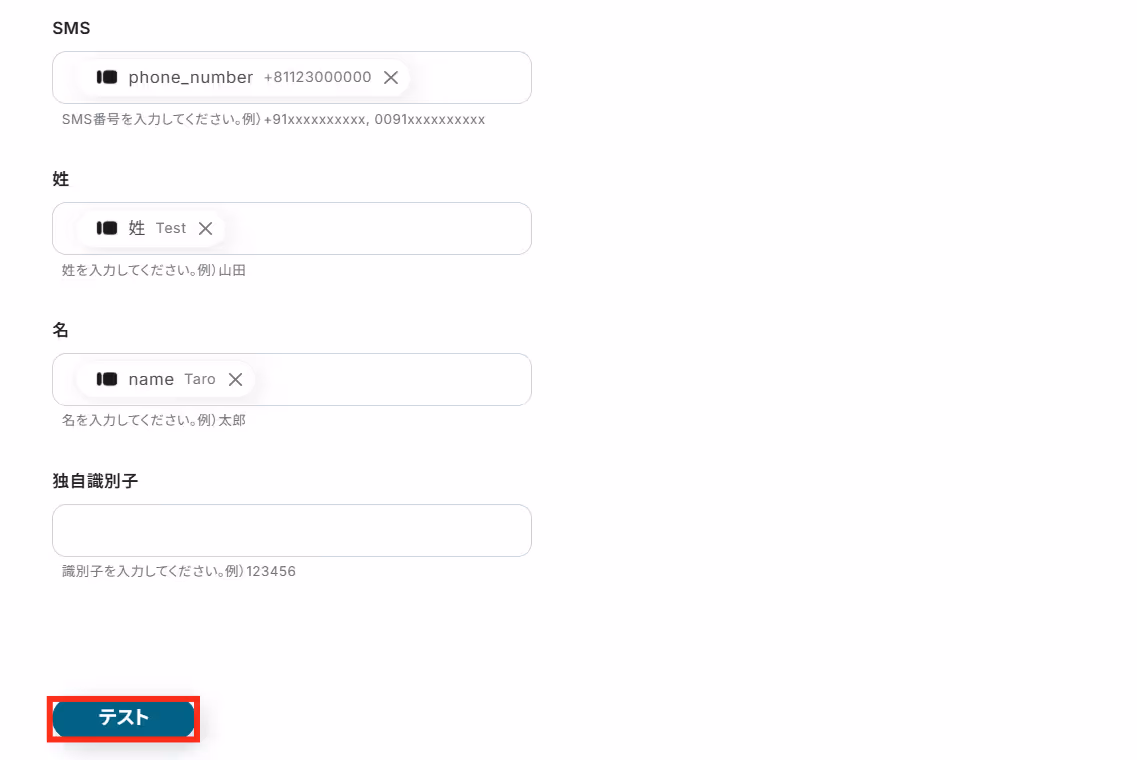 その他の項目は任意で入力を行ってください。設定が完了したらテストボタンをクリックしましょう。