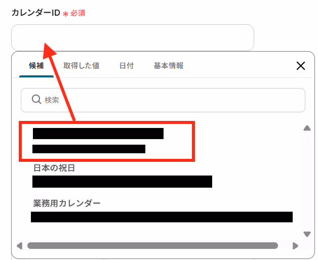API接続設定ではGoogleカレンダーに登録する日時や予定のタイトルなどを設定していきます。