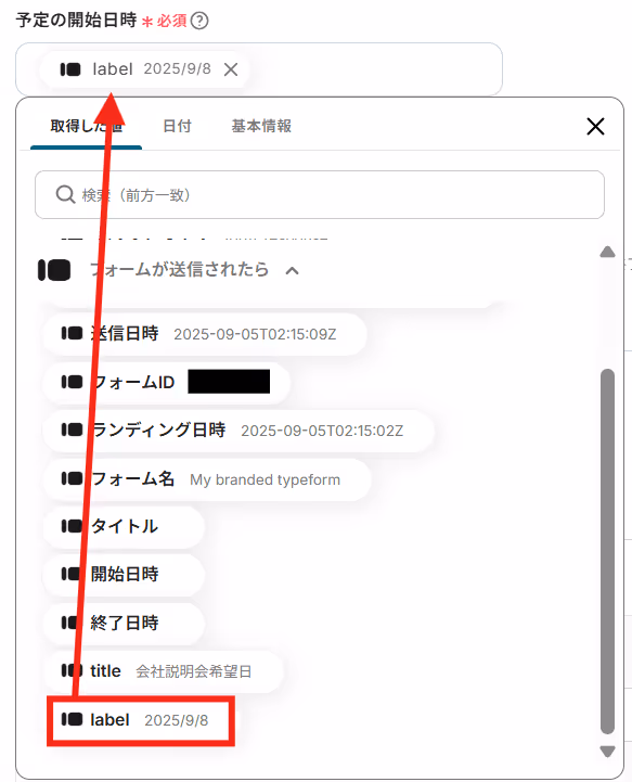 続けて、answersの中のlabelの+ボタンをクリックしてください。この項目はGoogleカレンダーに登録する日付として使用します。