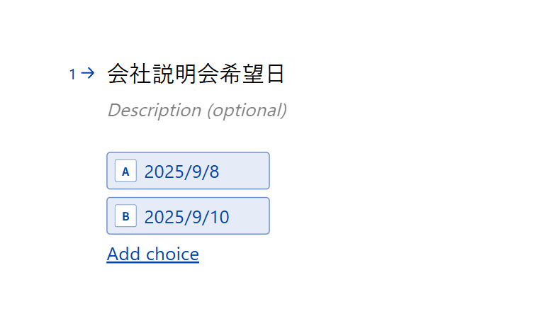 また、次の画面の操作を行う前にTypeformにてフォームを作成しましょう。今回は下記のようなフォームを作成して進めています。