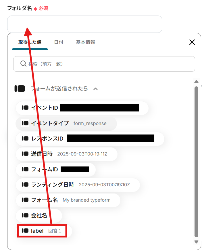 例えば「特定の選択肢を選んだ回答」や「問い合わせ種別が『資料請求』の回答」といった条件で処理を分岐させ、必要な情報だけを対象にフォルダを自動作成できるため、不要なフォルダが乱立することなく、よりスマートな情報管理体制を構築できます。