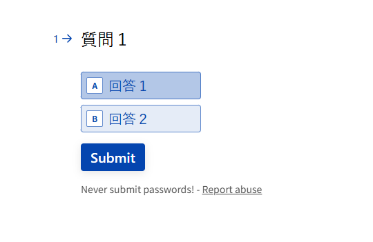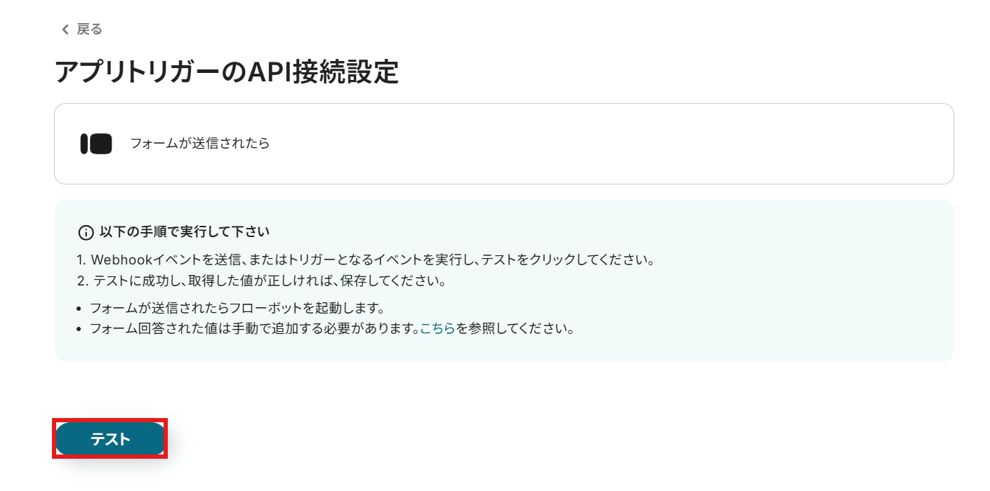 次の画面のテストでフォームの回答結果を取得するため、先ほど作成したフォームに回答を送信してください。