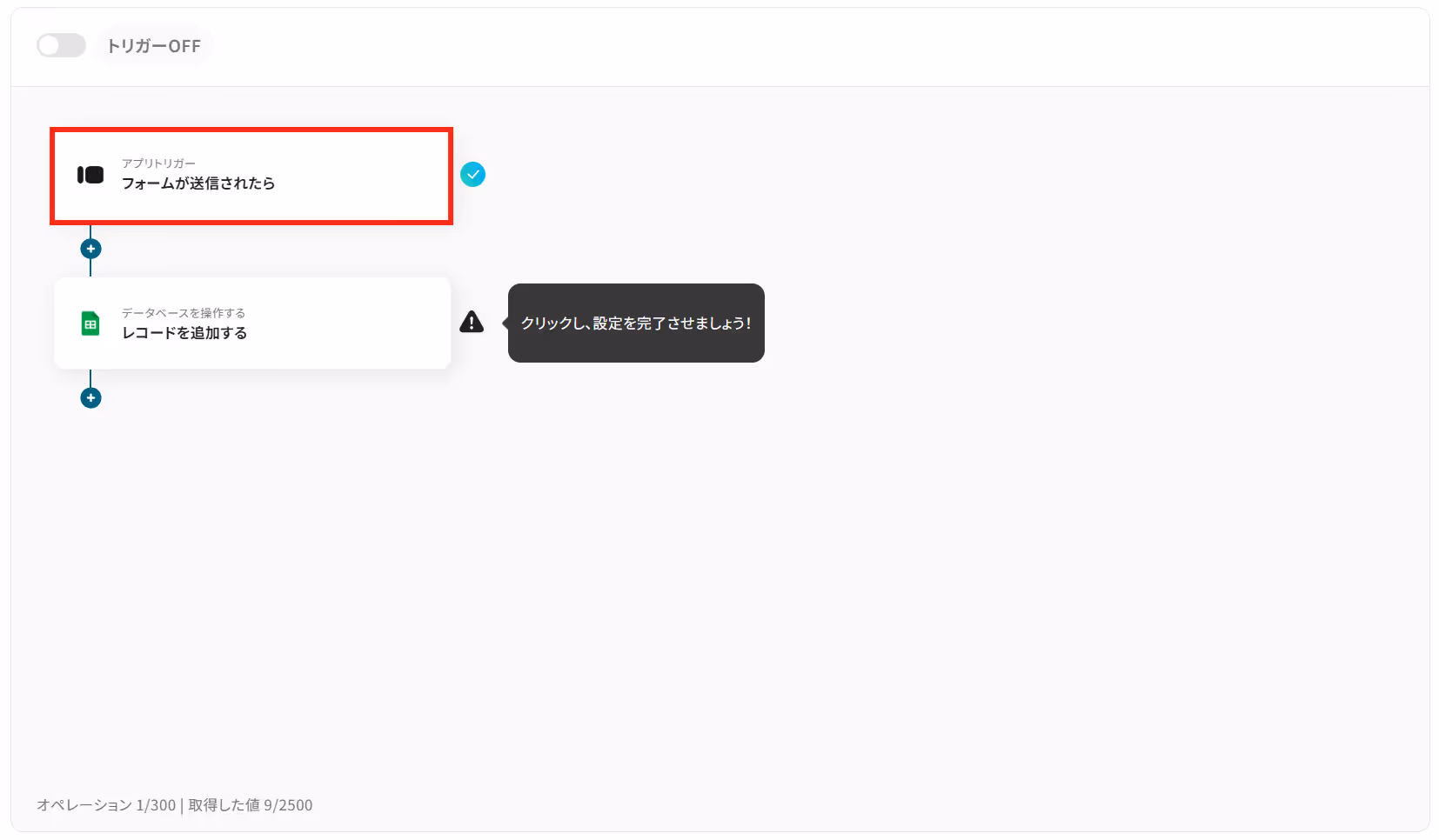 以下の画面が表示されるので、「トリガーをON」をクリックしたら、自動化の設定は完了となります。