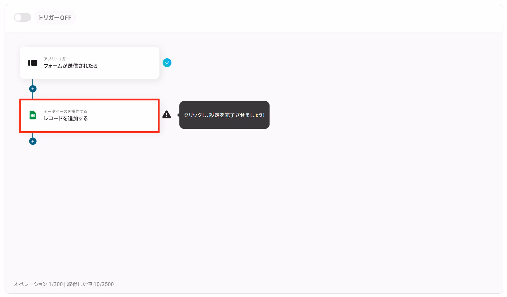 画面下の保存するボタンをクリックし、Google スプレッドシートへのレコード追加設定を完了させてください。