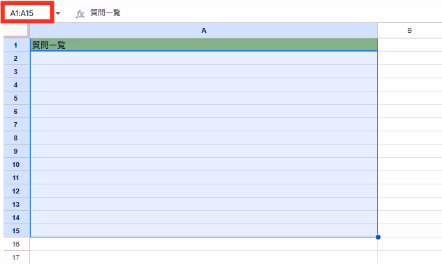 今回は「企業へ送られた質問を集約するGoogle スプレッドシート」のイメージで作成しています。