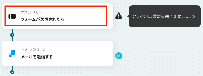 - アクション:テンプレート通りに「フォームが送信されたら」を選択します。