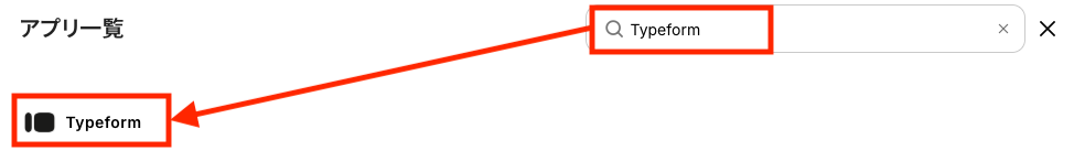 検索窓に「Typeform」と入力し、検索結果に表示されたアプリを選択します。
