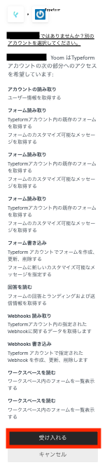 すると、Yoomに付与されるアクセス権の一覧が表示されます。