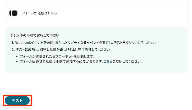 Typeformで発生したフォーム送信イベントを検知し、その情報を外部システムに自動で通知する仕組みのことです。