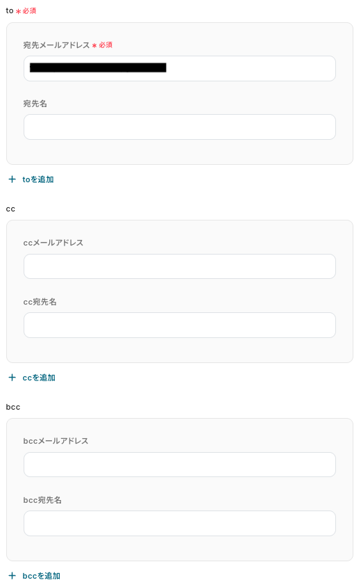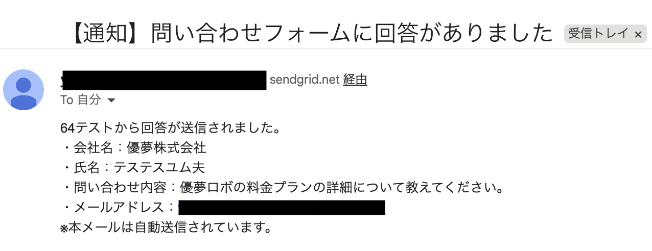 - SendGridのメール送信設定では、通知先のメールアドレス(To, Cc, Bcc)や件名、本文などを任意の内容で設定してください