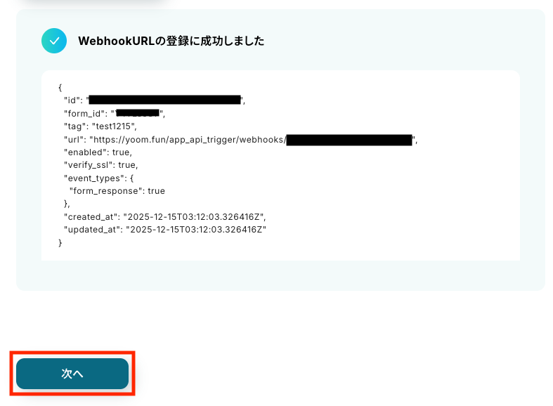 これを設定すると、YoomとTypeform間のデータ連携がリアルタイムで行われます。