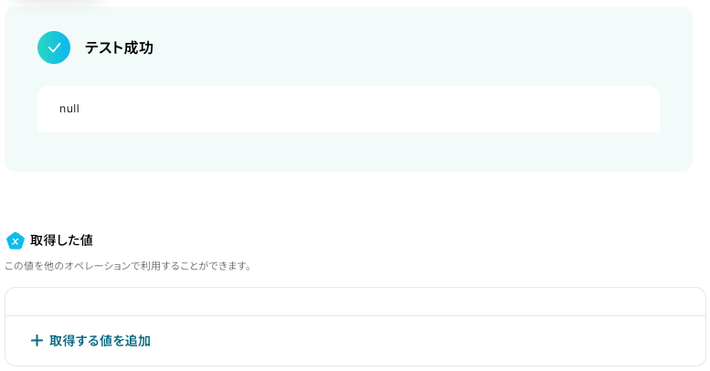 必要に応じて、「+取得する値を追加」ボタンから他のデータを取得することも可能です。