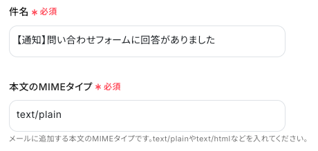 - Typeformのフォームで取得した回答内容を変数として件名や本文に埋め込むことで、回答内容に応じた通知メールを自動で作成できます