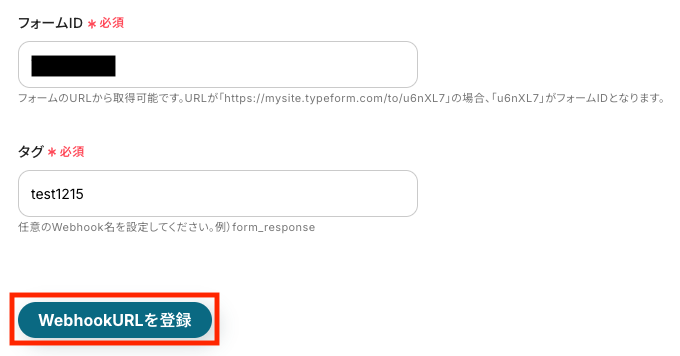 タグを入力したら、「WebhookURLを登録」をクリックします。