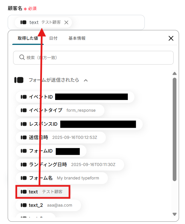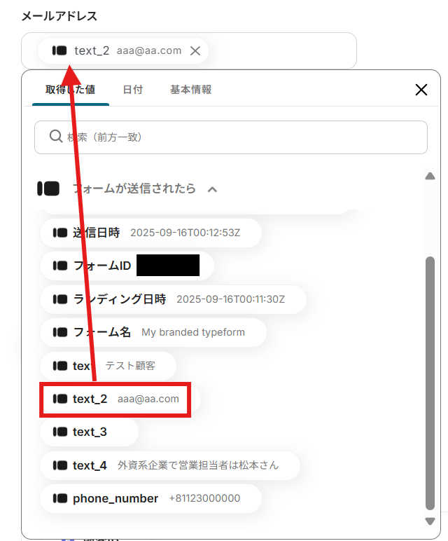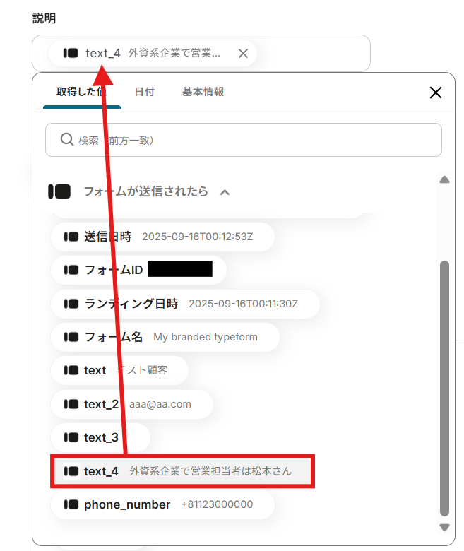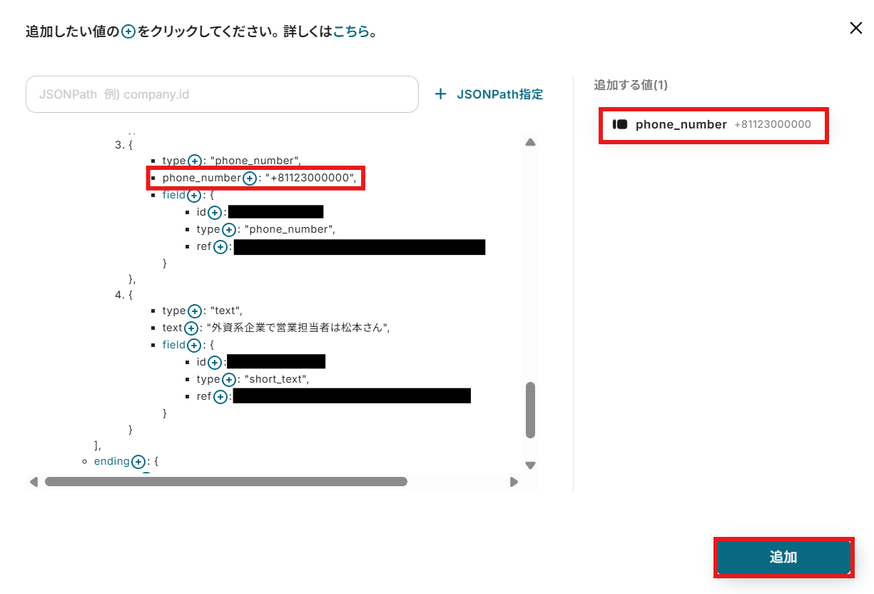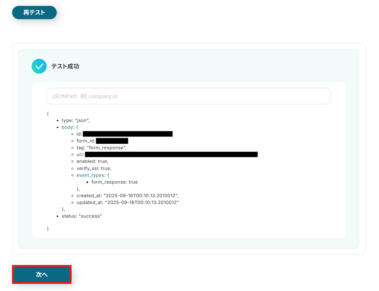 ・TypeformのアウトプットはJSONPathから取得可能です。取得方法は下記をご参照ください。
