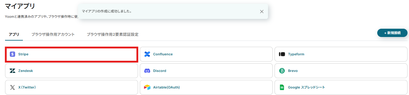 マイアプリにStripeが追加されたことを確認出来たら、Stripeのマイアプリ登録は完了となります。