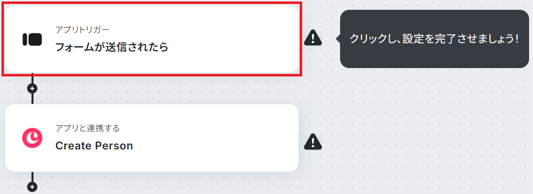 フローの作成方法 今回は、Typeformの回答をもとに、CopperにPersonを作成する フローを作成していきます! 作成の流れは大きく分けて以下の通りです。