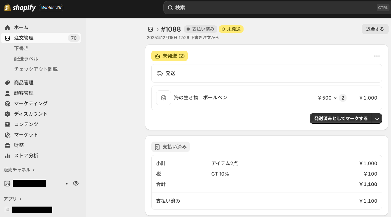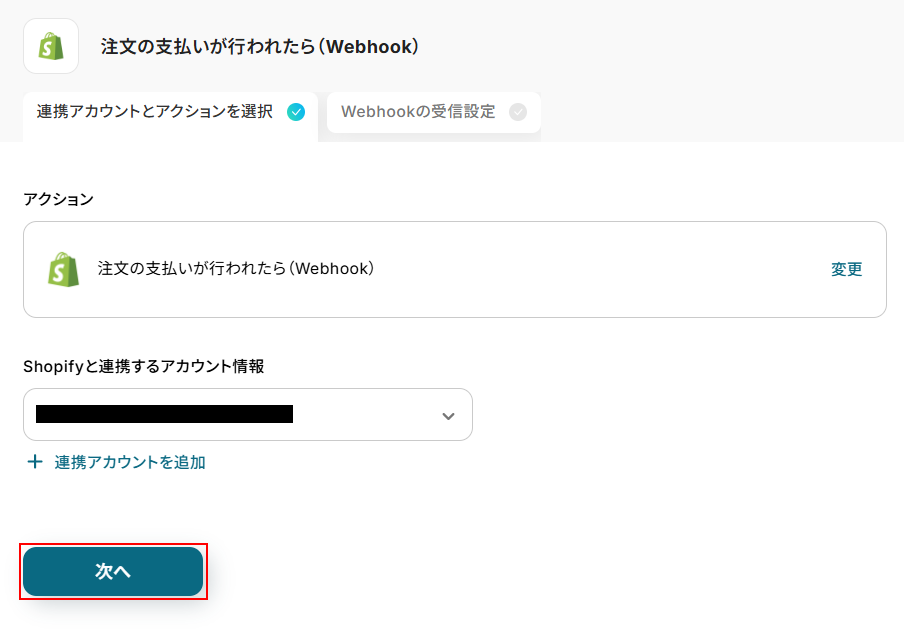 ステップ3:Shopifyの注文に支払いが行われた際の設定