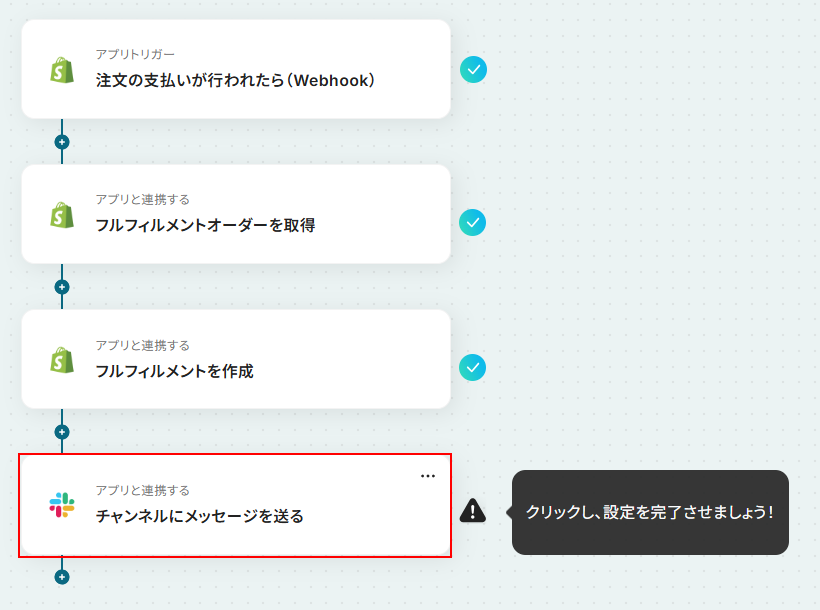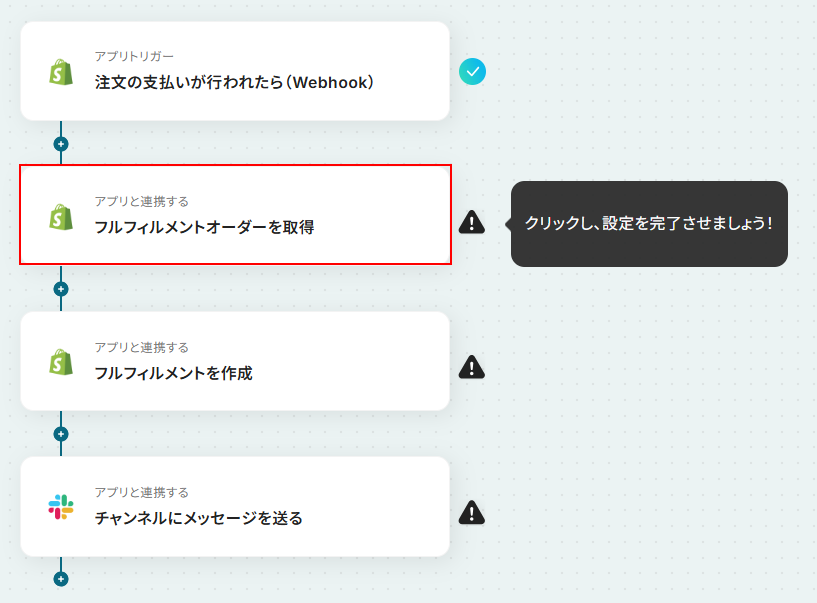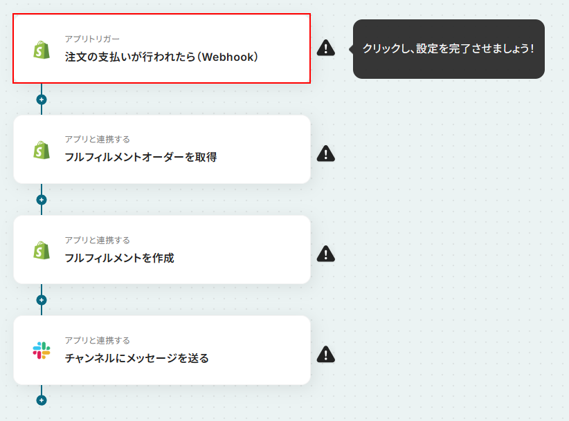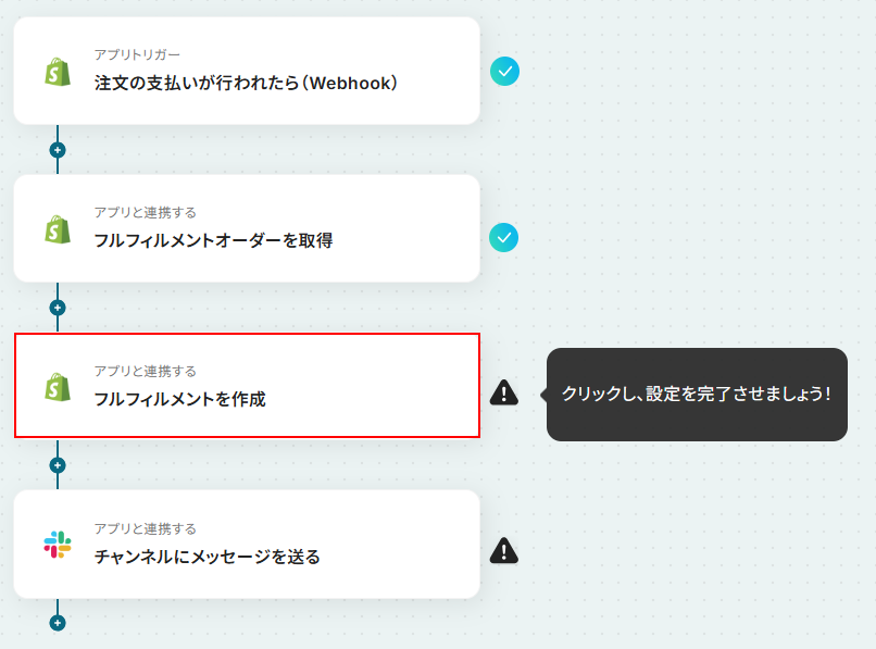 それではここから代表的な例として、Shopifyで支払いが行われた際にフルフィルメントを自動で作成し、その内容をSlackで通知するフローを解説していきます!