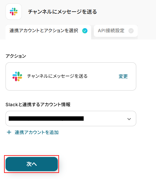 - 最後に、オペレーションでSlackの「チャンネルのメッセージを送信する」アクションを設定し、取得した商品情報を指定のチャンネルへ通知します。
