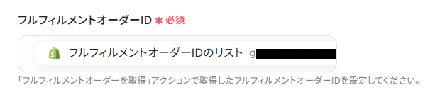 - 続けて、オペレーションでShopifyの「フルフィルメントオーダーを取得」アクションを設定します