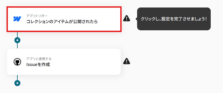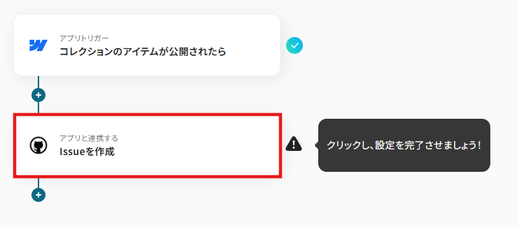 Webflowでアイテムが公開されたらGitHubでIssueを作成するための設定を行います。