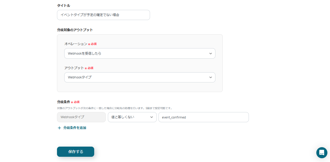 2.上記で設定したTimeRexのWebhookは予定の登録だけでなく、キャンセルの場合でも起動してしまいます。