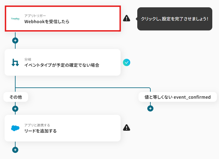 それではここから代表的な例として、Timerexで新しい予定が登録された際に、その情報をSalesforceにリードとして自動で追加するフローを解説していきます!