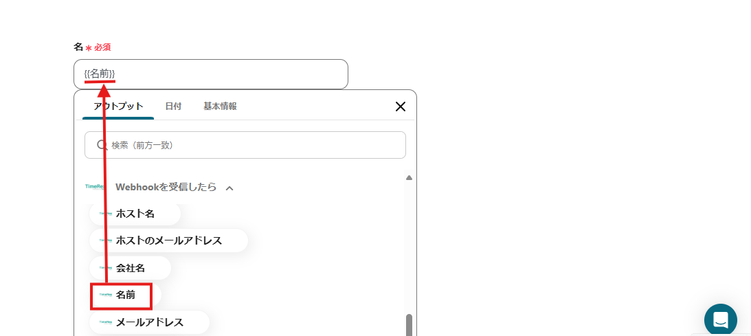 3.追加するレコードの値の入力には、先ほど取得したTimeRexのアウトプットを選択できます。