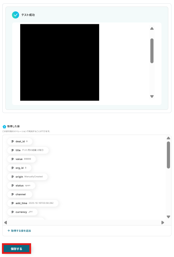 確認できたら、Yoomの画面に戻り「保存する」をクリックします。