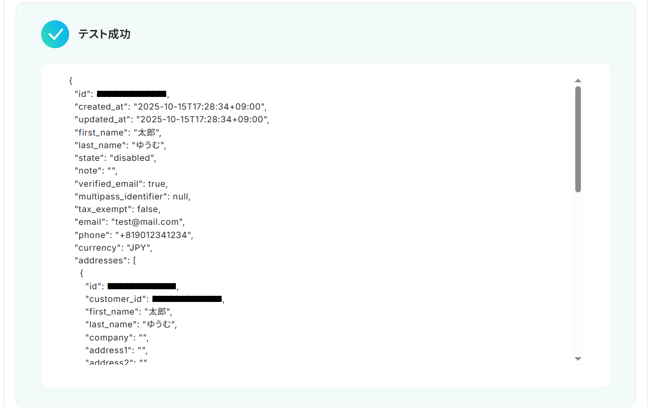連携したGmailアドレスから、Shopifyの顧客情報が送信されました!