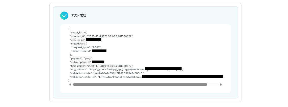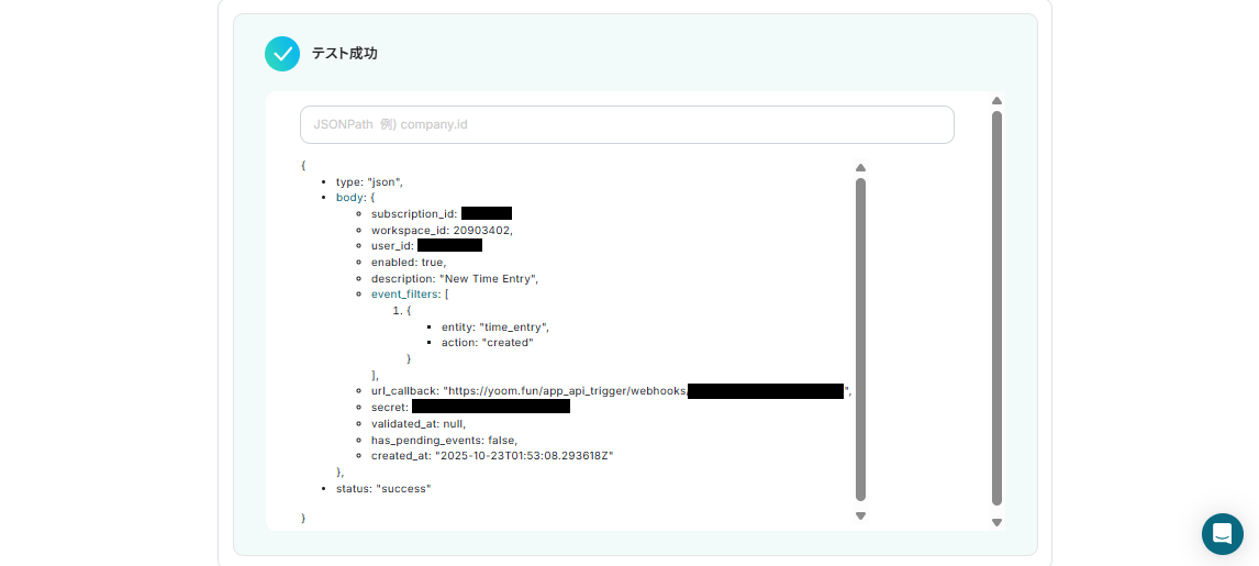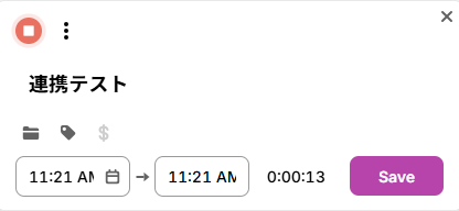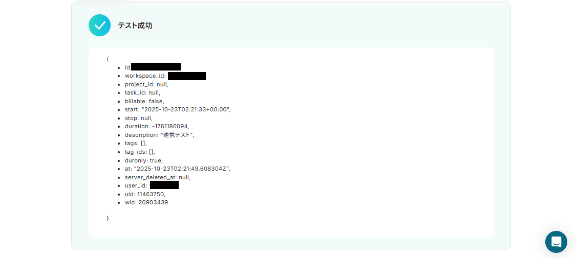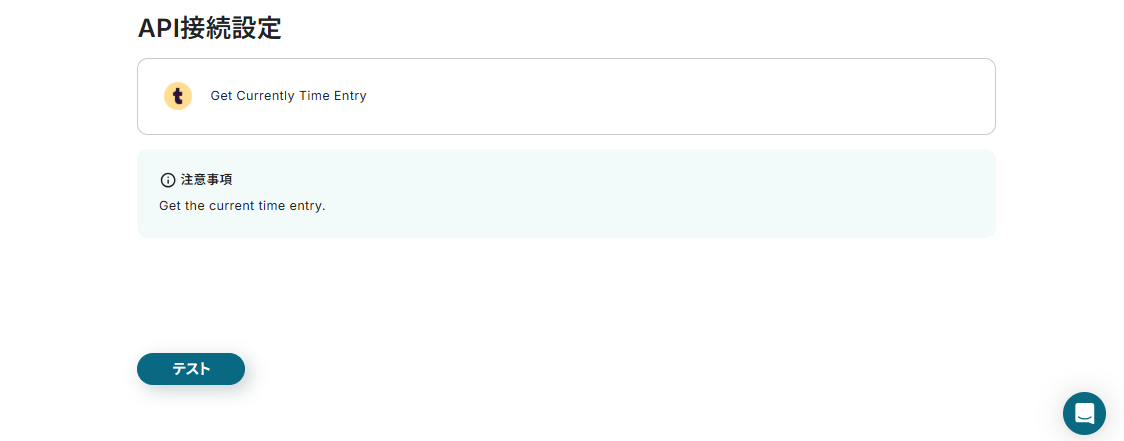 先ほどTogglで作成したTime Entryの詳細情報を取得するために「テスト」ボタンを押しましょう。
