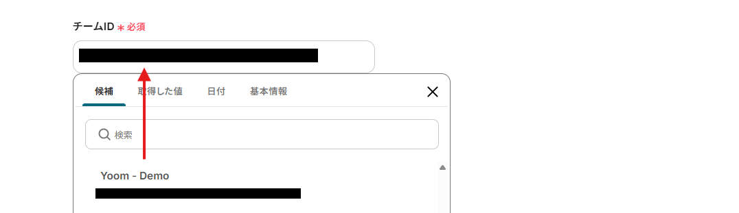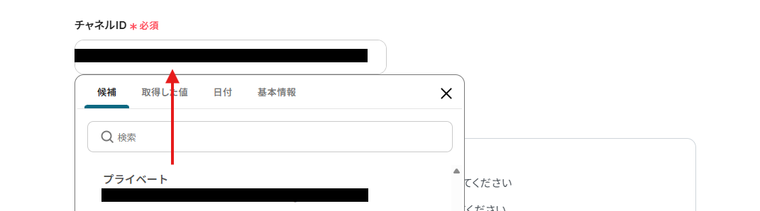 チームIDとチャネルIDは、枠内をクリックし表示された候補から選択します。