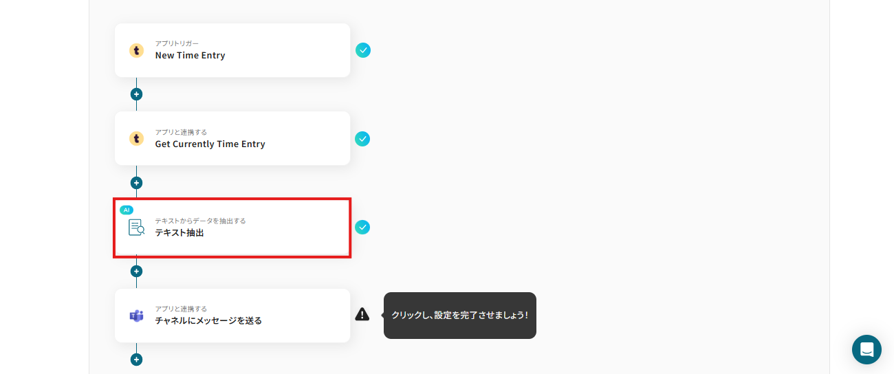 AI機能を活用してTogglで新たに作成したTime Entryの日付と時刻を抽出する設定を行いましょう。
