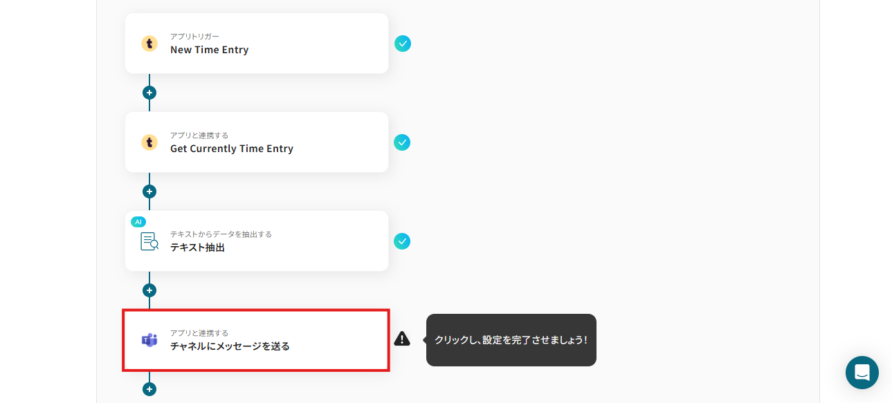 このワークフローを活用すれば、Togglに新しいTime Entryが作成されるたびに、その内容を自動でMicrosoft Teamsへ通知することが可能です。