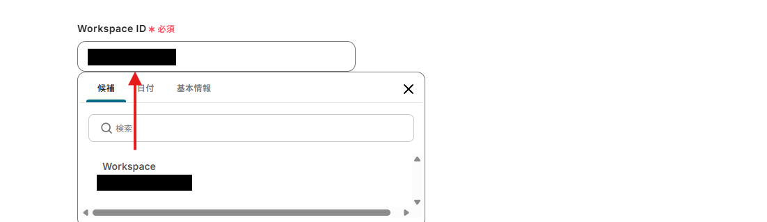 Workspace IDは、枠内をクリックし表示される候補から使用したいものを選択してください。