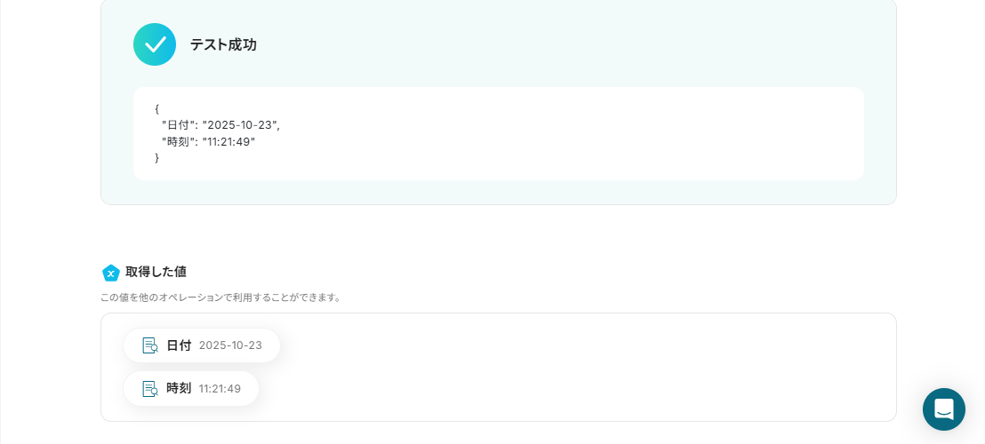 テストが成功すると、抽出した情報が取得した値に表示されます。