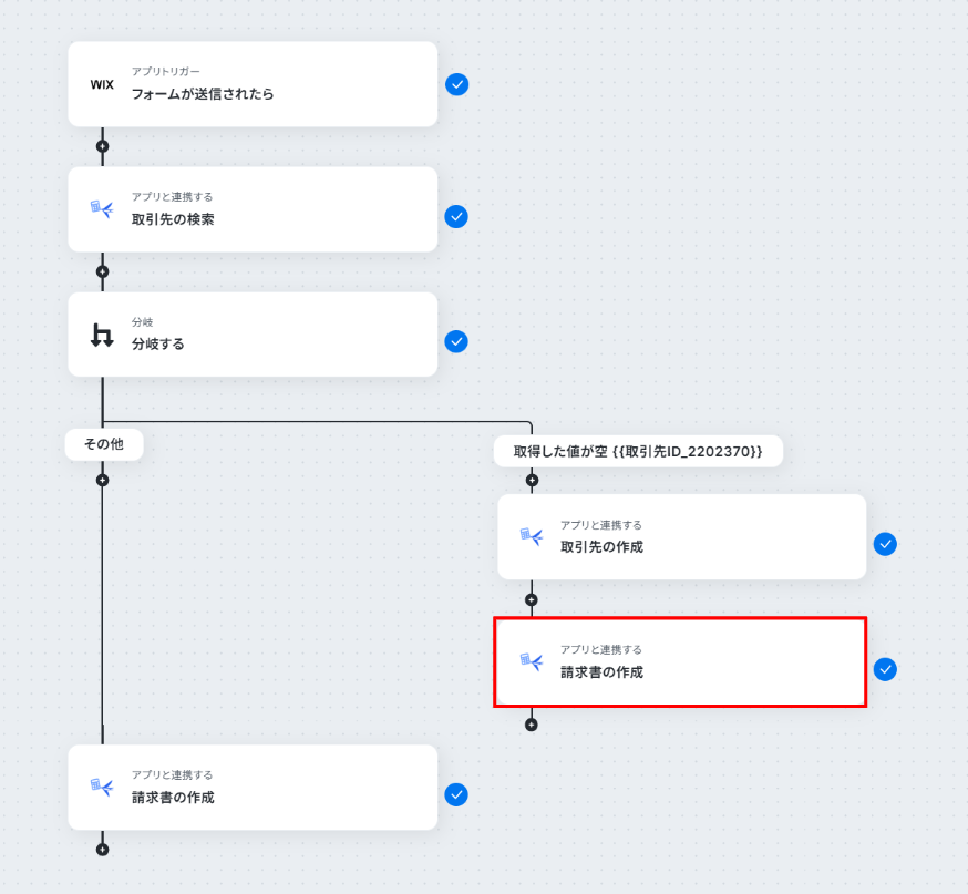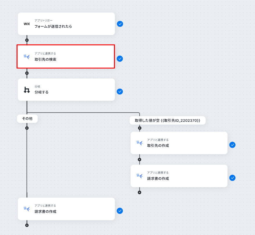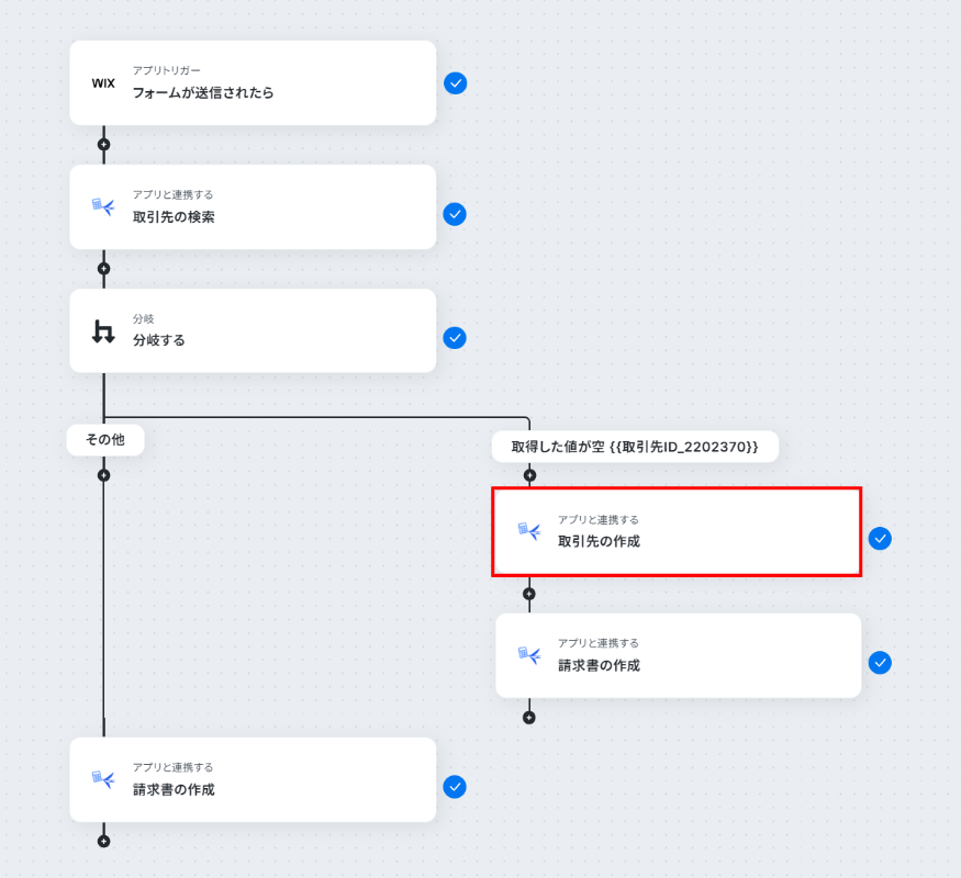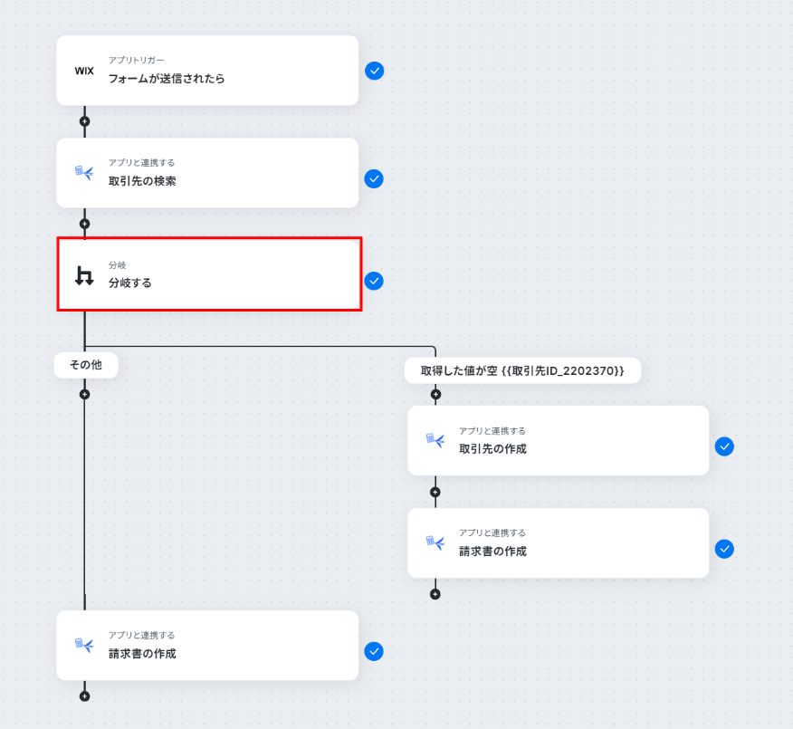 - 続いて、分岐機能を用いて、取引先の有無によってその後の処理を分けます
