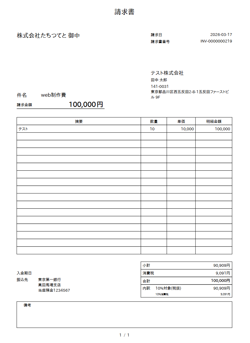 - 取引先が既に存在する場合は、直接freee会計の「請求書の作成」を実行します