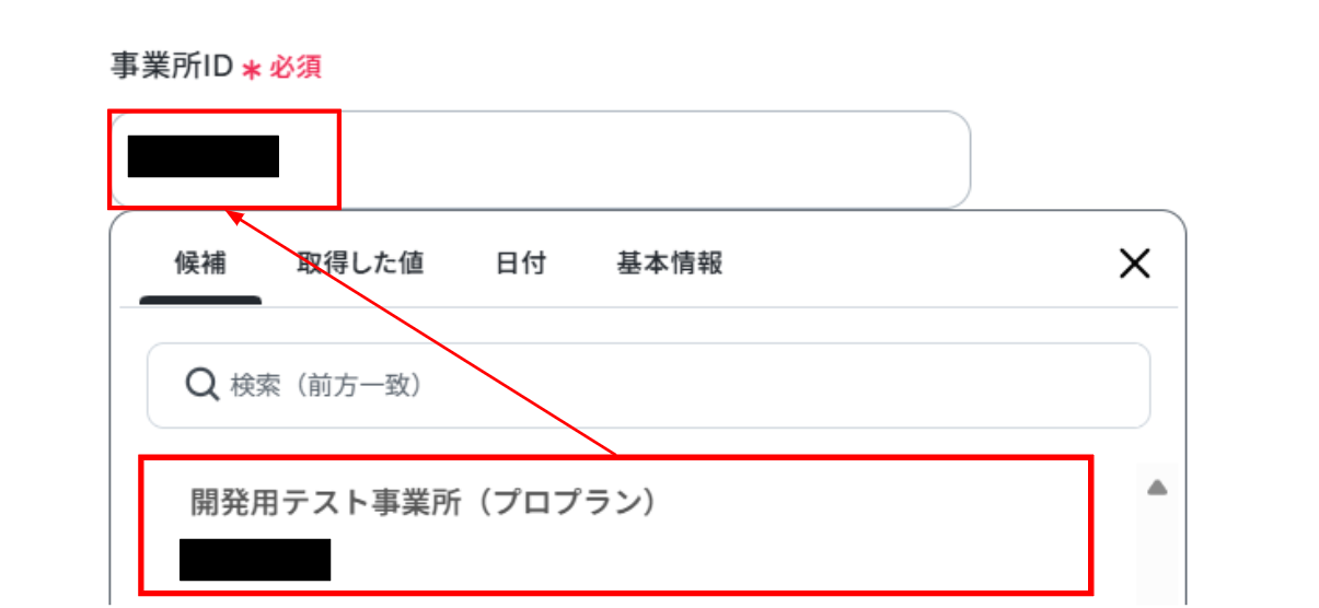 取得方法は「『取得する値』を追加する方法」をご参照ください。