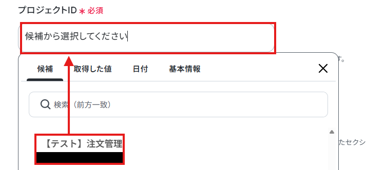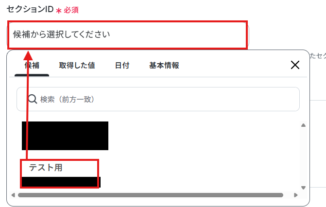 使用したいプロジェクトとセクションのIDを候補から選択しましょう。