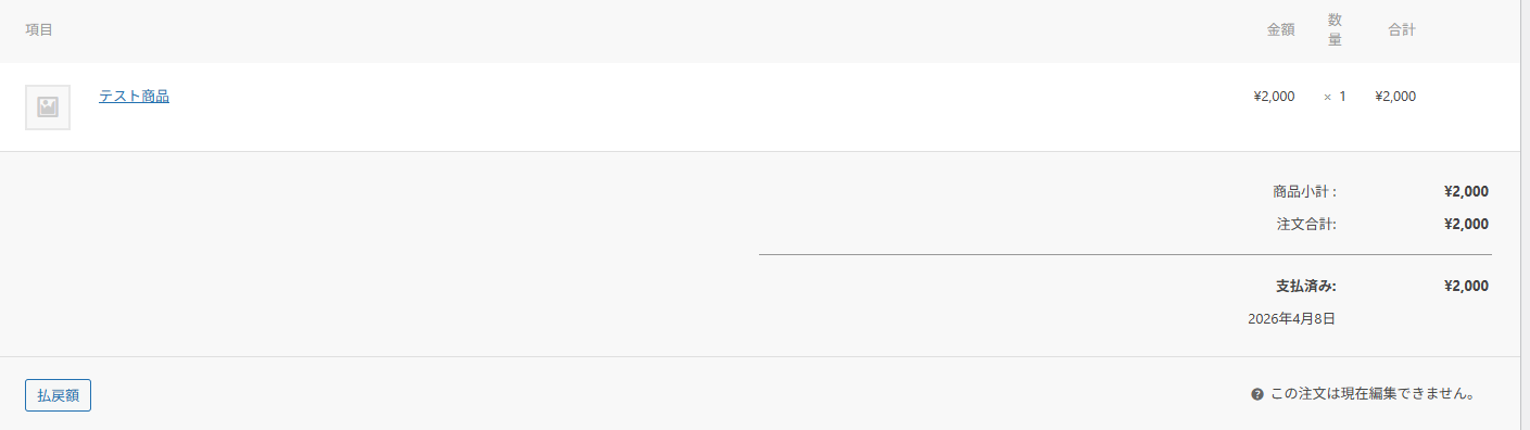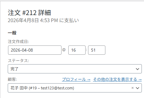 WooCommerceにテスト用の注文を新規作成しましょう。
