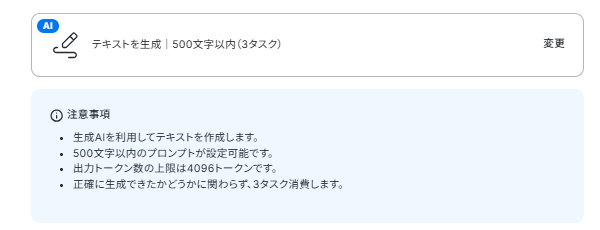 次にAIでテキストを生成します。「テキストを生成」をクリックしてください。