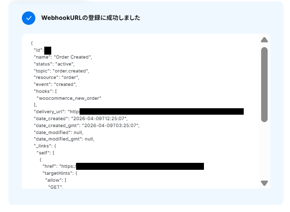 「WebhookURLを登録」ボタンをクリックし、登録に成功すればOKです。
