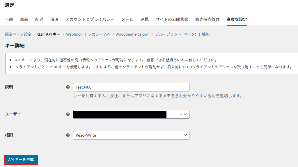 【WooCommerceでConsumer KeyとConsumer Secretを取得する方法】
