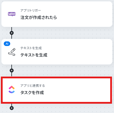 今回はWooCommerceで注文が作成されたら、AIで注文内容を解析してClickUpにタスクを自動作成するフローを作成していきます!